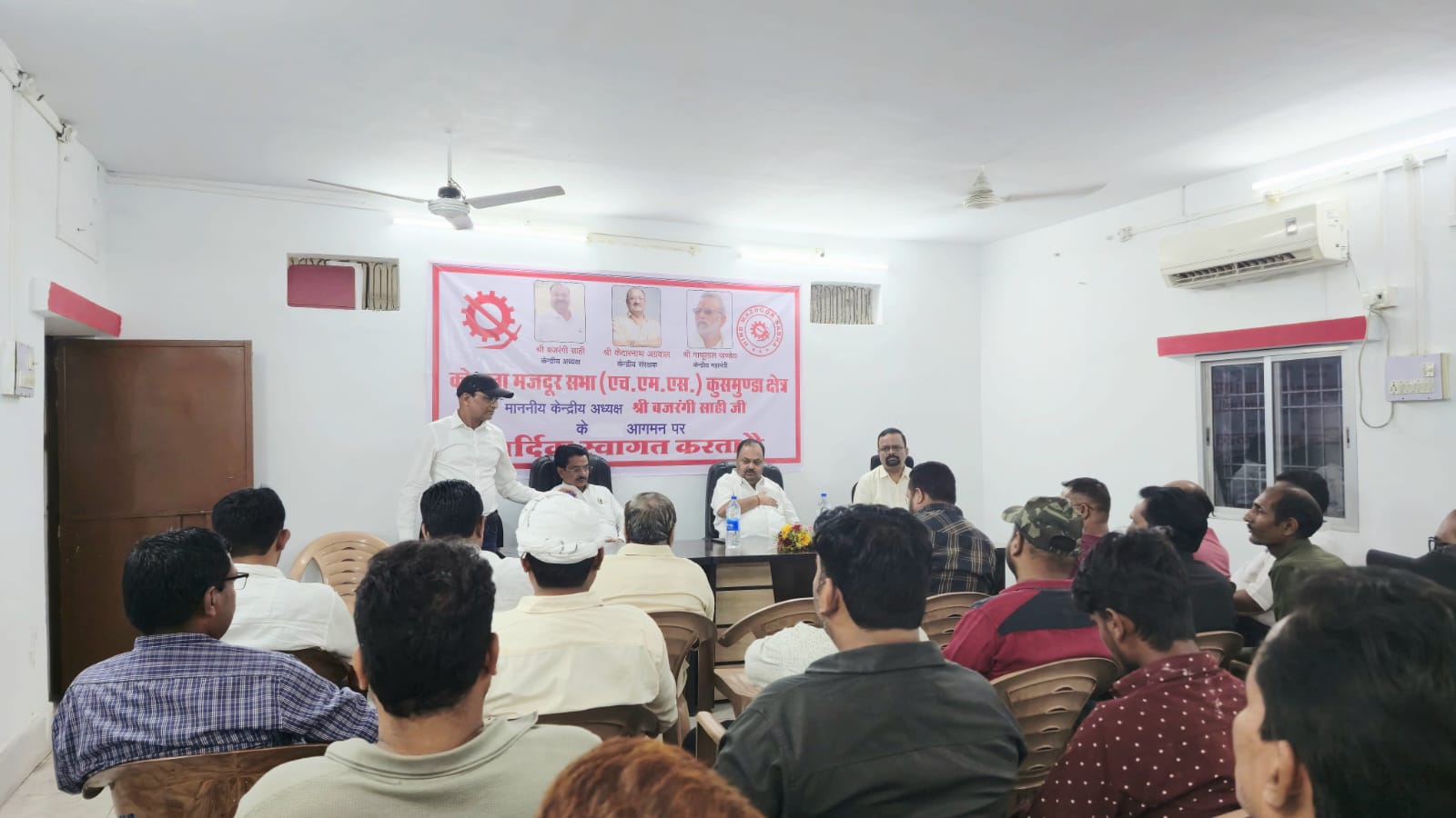 कोयला मजदूर सभा एस ई सी एल बिलासपुर के केंद्रीय अध्यक्ष आदरणीय श्री बजरंगी साही जी का अध्यक्ष बनने के बाद दूसरा आगमन था और दोनों ही बार उनका आना क्षेत्र के लिए ऐतिहासिक रहा, दोनों ही बार सैकड़ो कार्यकर्तायों ने पूरे जोशो खरोस से कोयला मजदूर सभा (एच एम एस)का दामन थामा, उन्होंने जोर देते हुए कहा कि एच एम एस अपने आप में एक मजबूत संगठन है जो किसी राजनीतिक  विशेष से जुड़ा हुआ नहीं है,उन्होंने कोयला मजदूर सभा एसएमएस के साथ जुड़ने वाले सभी नए साथियों का गर्म जोशी से स्वागत किया साथ ही उन्होंने कहा कि भले ही पहले किसी कारण से आप संगठन से अलग हुए हो लेकिन अब जब जुड़े हैं तो पूरी ताकत के साथ जुड़े हैं जिसका असर निःसंदेह कुसमुंडा क्षेत्र के मेंबरशिप में दिखाई देगा