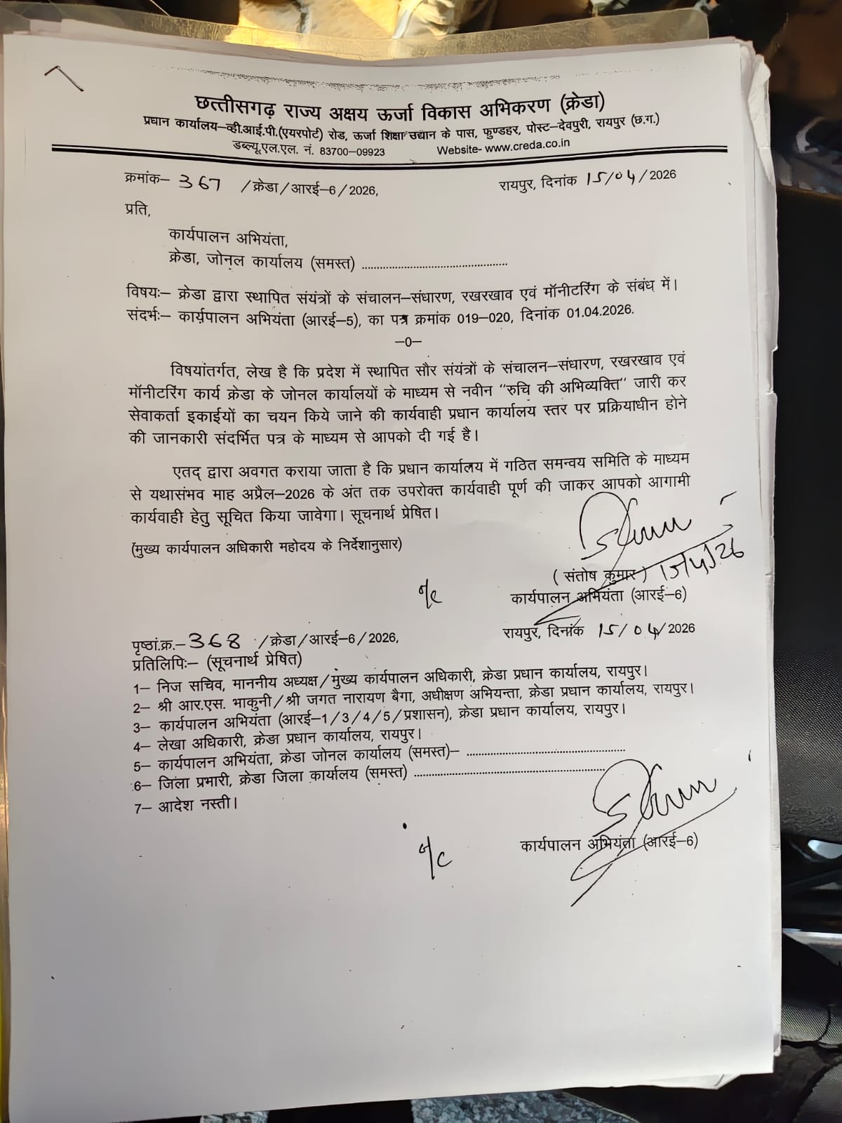 इस समस्या के समाधान के लिए राज्य के सभी प्रभावित सेवाकर्ता इकाइयों ने 15 अप्रैल 2026 को रायपुर स्थित प्रधान कार्यालय पहुंचकर अपनी बात रखी। इस दौरान उन्होंने क्रेडा के अध्यक्ष भूपेंद्र सवानी, मुख्य कार्यपालन अधिकारी राजेश राणा तथा अधीक्षण अभियंता जगत नारायण बैगा से सौजन्य मुलाकात कर विस्तृत चर्चा की।