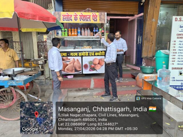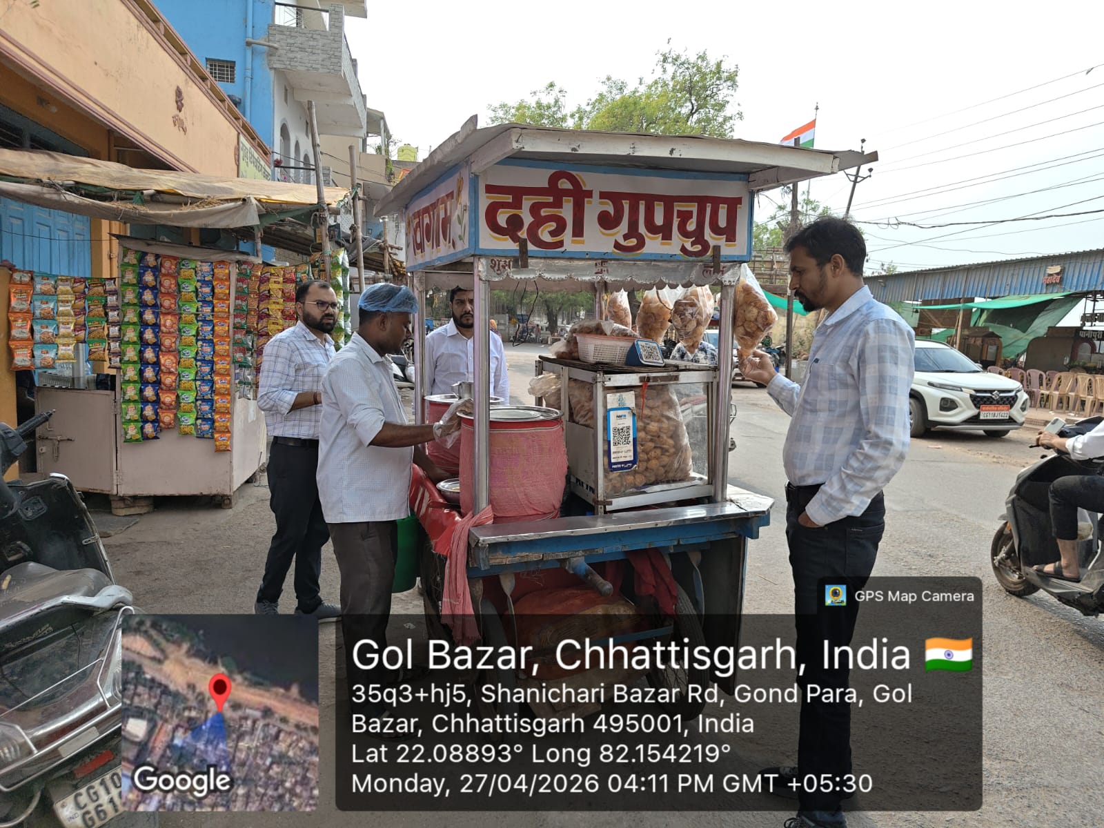 बिलासपुर, 27 अप्रैल 2026/ “सही दवा – शुद्ध आहार यही छत्तीसगढ़ का आधार” थीम के अंतर्गत राज्य शासन के निर्देशानुसार एवं कलेक्टर के मार्गदर्शन में संचालित 15 दिवसीय विशेष अभियान के तहत आज शहर के विभिन्न प्रमुख स्थानों पर खाद्य सुरक्षा को लेकर सघन जांच अभियान चलाया गया।अभियान के दौरान कोन्हेर गार्डन चौक, मरीन ड्राइव चौपाटी, अशोक नगर चौक एवं नूतन चौक क्षेत्र में संचालित गुपचुप, चाट एवं अन्य खाद्य सामग्री के ठेलों का निरीक्षण किया गया। निरीक्षण के दौरान विक्रेताओं को स्वच्छता बनाए रखने हेतु हैंड ग्लव्स एवं हेड कैप वितरित किए गए तथा खाद्य सुरक्षा मानकों के संबंध में आवश्यक जानकारी प्रदान की गई।अधिकारियों ने सभी विक्रेताओं को स्पष्ट निर्देश दिए कि वे खाद्य पदार्थों के निर्माण एवं विक्रय में स्वच्छता एवं गुणवत्ता के निर्धारित नियमों का कड़ाई से पालन करें। नियमों की अनदेखी पाए जाने पर नियमानुसार सख्त कार्रवाई की चेतावनी भी दी गई।