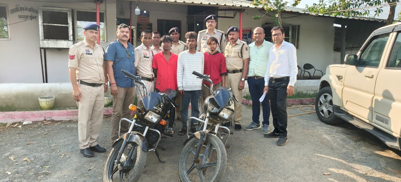 मुखबिर से सूचना मिली कि राजू नगेसिया दिव्यांशु बघेल विजय सोनकर मिलकर 27 अप्रैल को एक मोटरसाइकिल चोरी किए हैं, की सूचना पर आरोपियों के ठिकानों पर पुलिस टीम द्वारा दबिश दी गई जहां तीनों आरोपी को हिरासत में लेकर पूछताछ किया गया। जहां आरोपियों ने अपना जुर्म स्वीकार किया है एवं पुलिस टीम द्वारा आरोपियों के कब्जे से चोरी की गई मोटरसाइकिल क्रमांक CG 15 DX 9052 जप्त किया गया है। आरोपियों के विरुद्ध अपराध सबूत पाए जाने पर प्रकरण के आरोपी